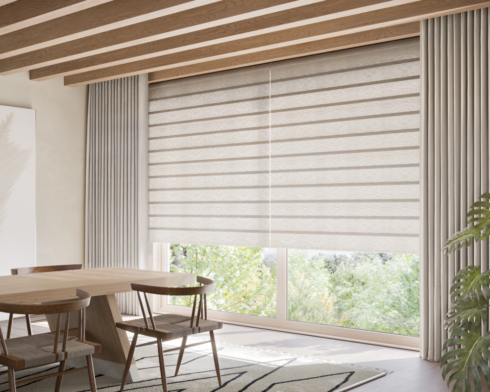 - Safety Options: Many fabric shades come with cordless options, making them safer for homes with children and pets. Motorization is also a good option however given the weight of some fabrics, motors may need to be hardwired so greater lifting capacity motors can be used.