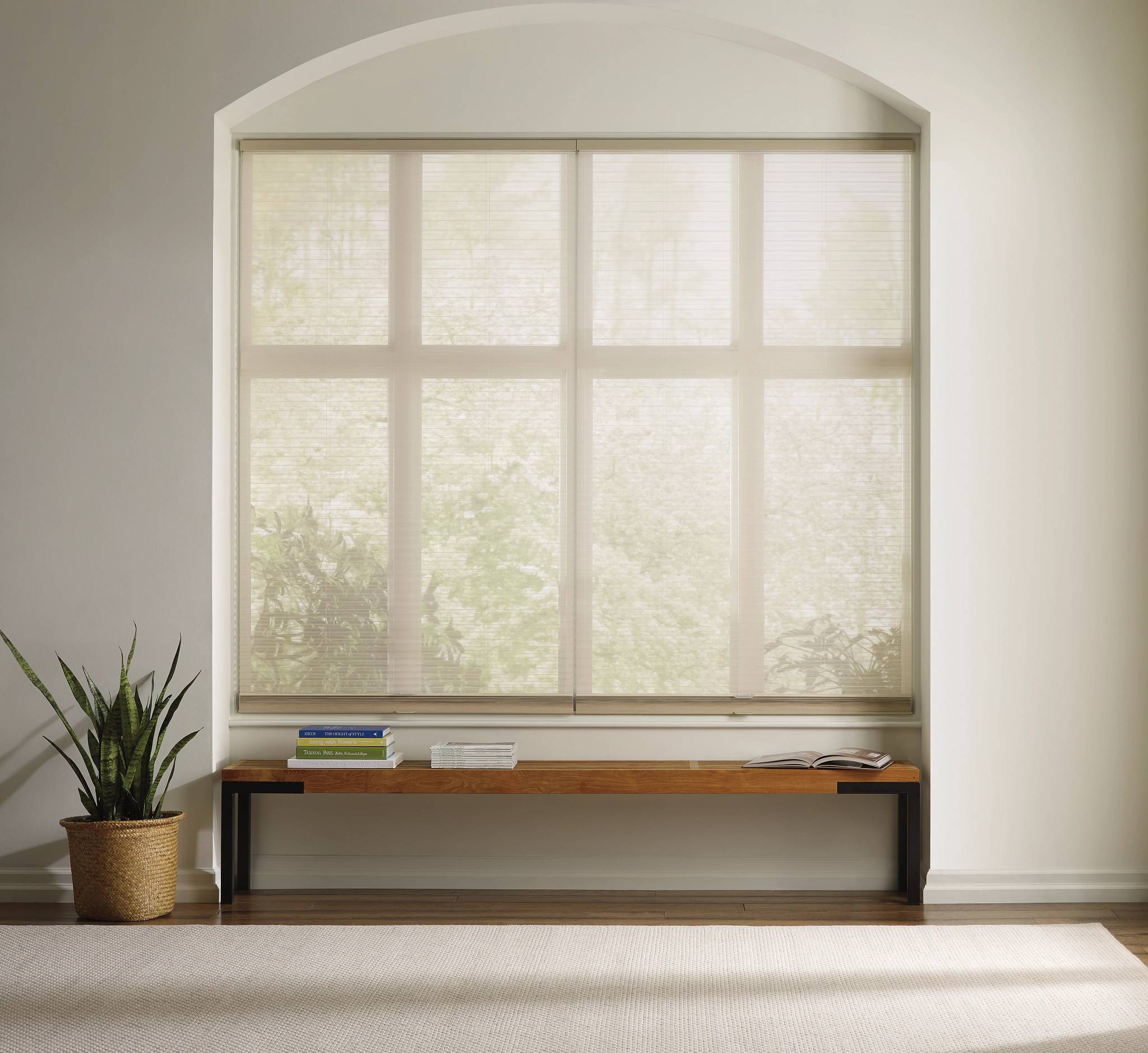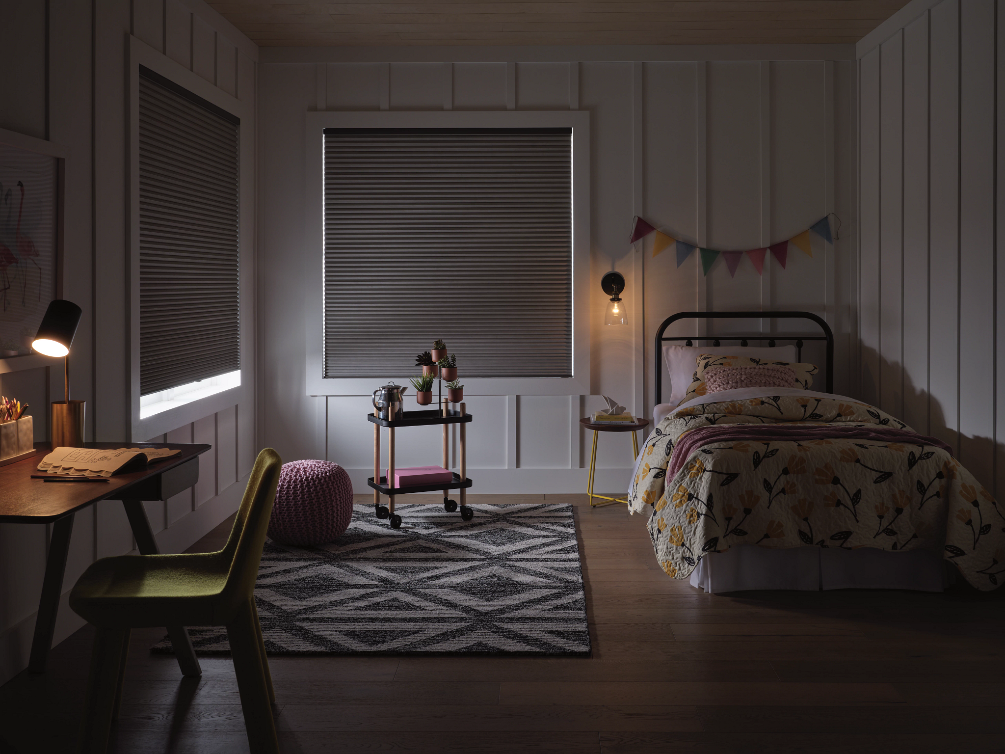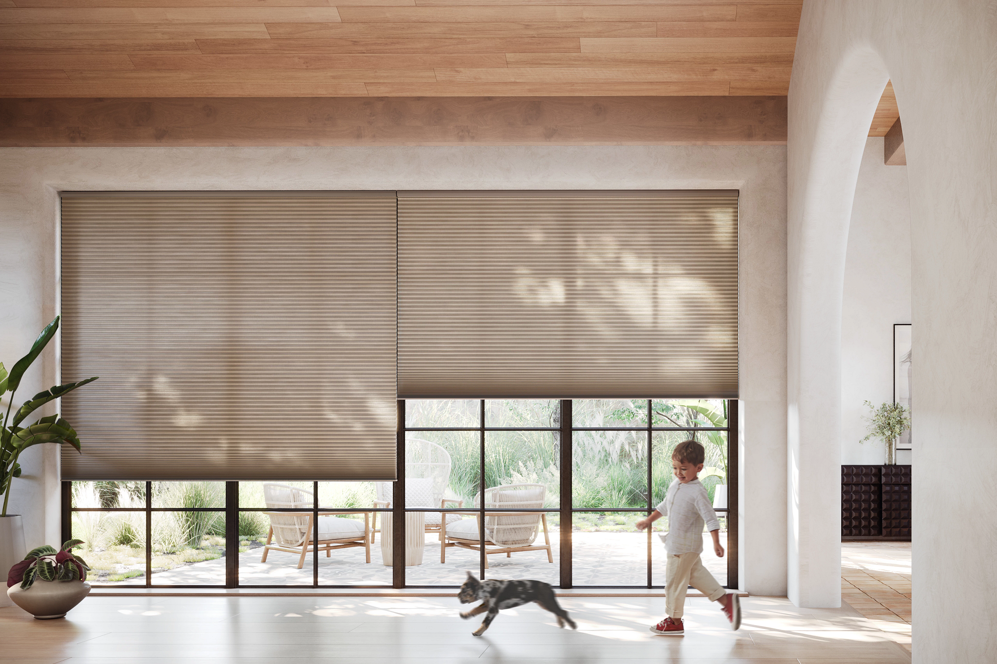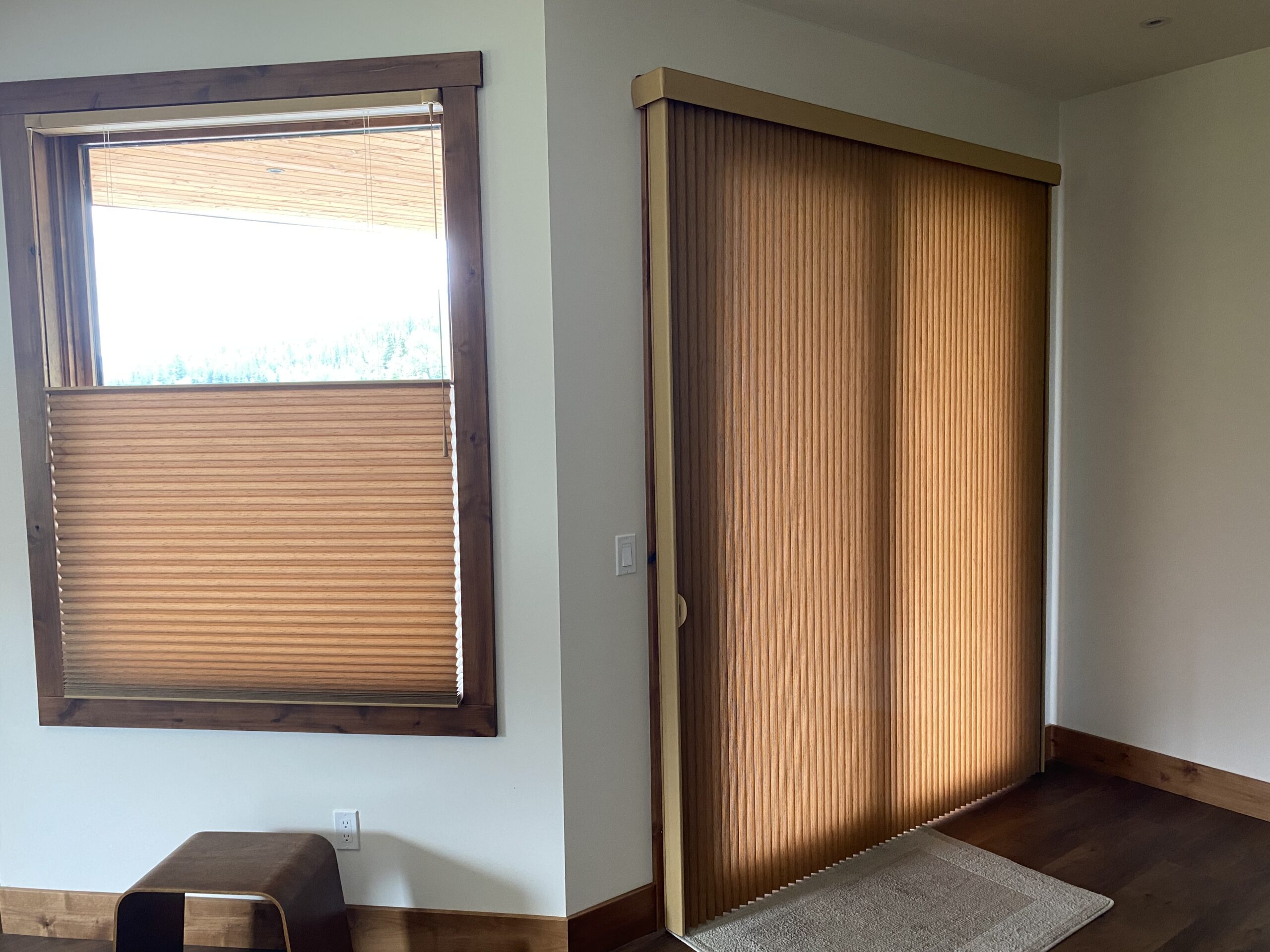Honeycomb shades, also known as cellular shades, are a popular window treatment designed to provide excellent insulation, light control, and privacy. When raised, cellular shades require very little stacking space making it ideal for view windows and spaces where unobstructed views are desired. They are available in many different patterns, styles & colors as well as layers (double & triple cell construction) to provide additional insulating value for less efficient windows. These shades typically have a neutral backing giving a uniform appearance when viewed from the outside which makes them ideal for multi-family dwellings where bylaws dictate a white or off-white appearance to the exterior. Motorization is also an option with power sources including solar, rechargeable battery and hardwired.