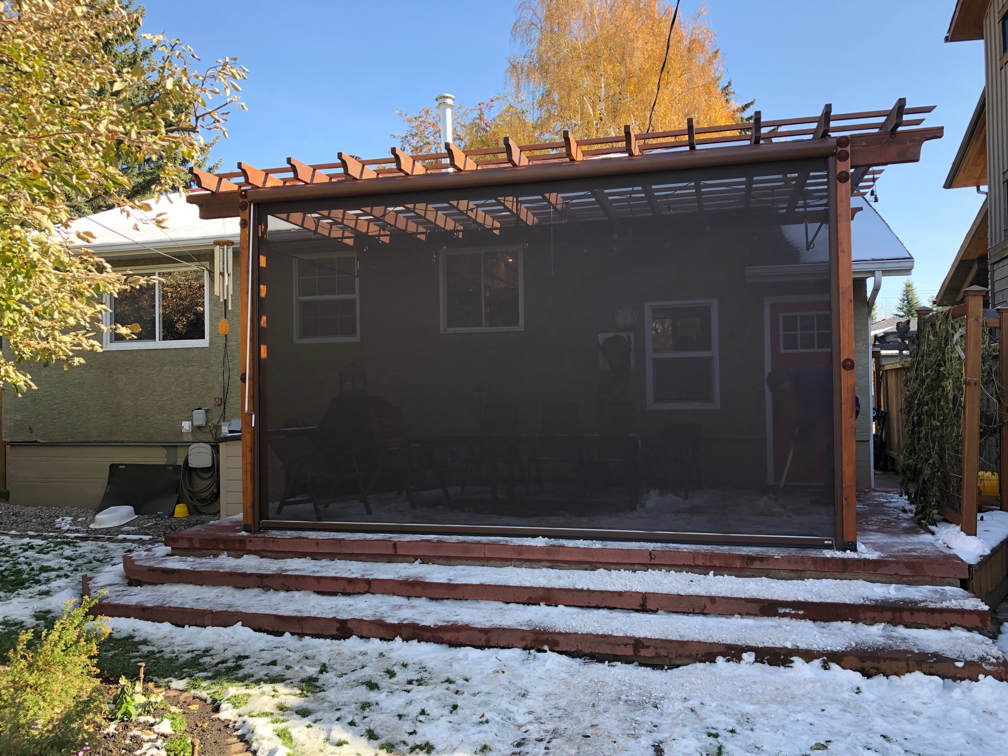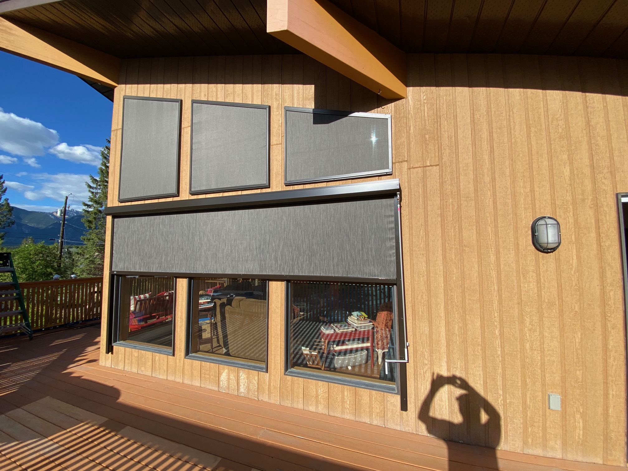 Exterior window shading was considered a luxury at one time but has recently become a standard in most new home construction above the 49th parallel. It is ideal for cabins, homes, restaurants, resort properties and anywhere that it is desirable to extend the outdoor barbeque season by 3 to 4 months without any additional heating required. Often used for patios, garages, gazebos & outdoor dining areas, they are an effective way of controlling heat, wind, insects & glare as well as damaging UV rays before they can penetrate the building envelope.